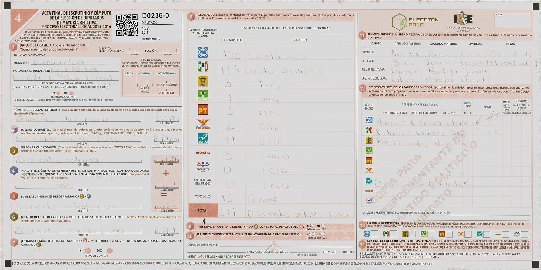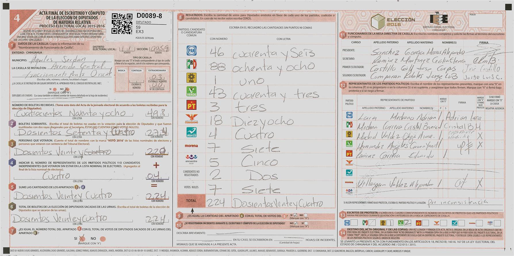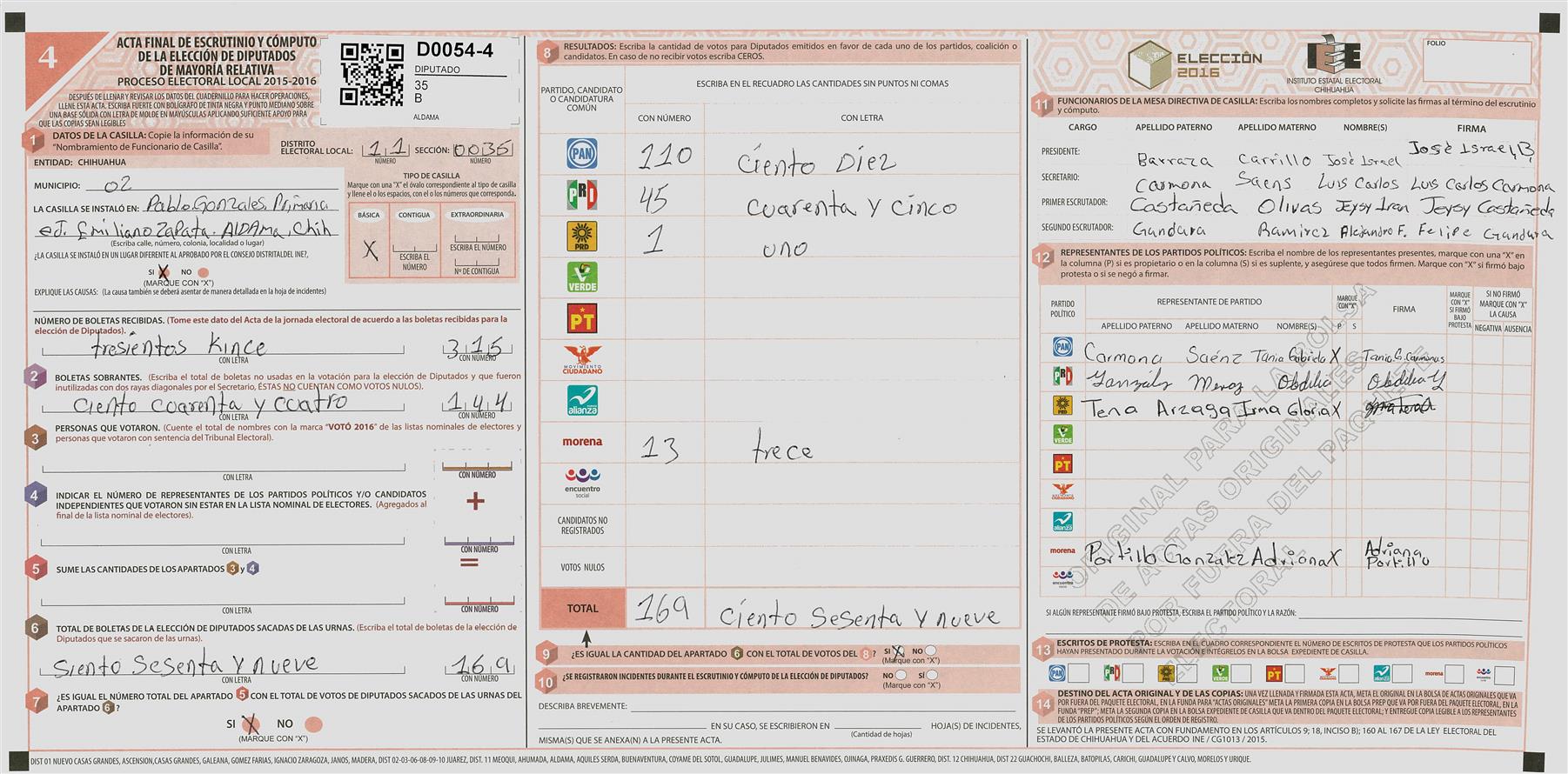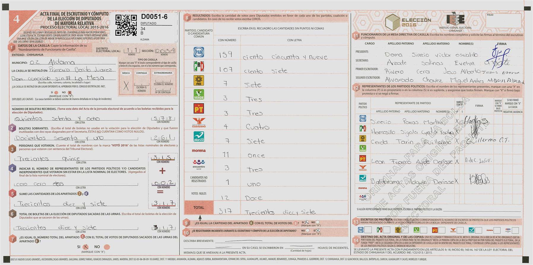 RESULTADOS POR CASILLA DEL MUNICIPIO DE 11 MEOQUI PARA LA ELECCIÓN DE DIPUTADOS