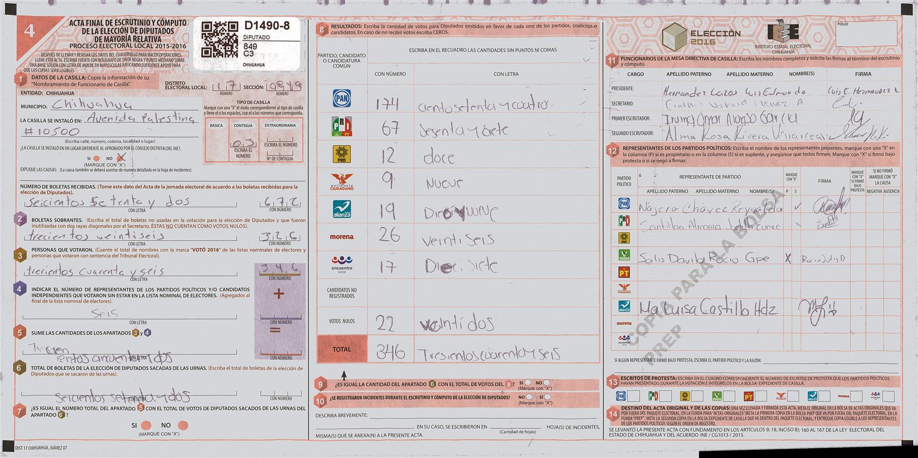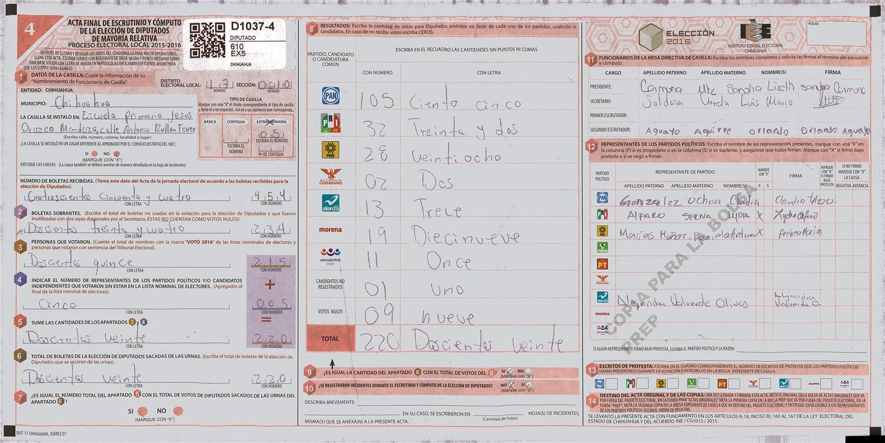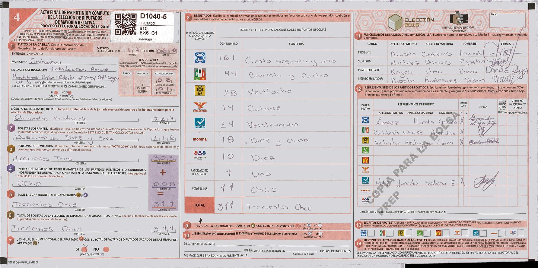 RESULTADOS POR CASILLA DEL MUNICIPIO DE 17 CHIHUAHUA PARA LA ELECCIÓN DE DIPUTADOS