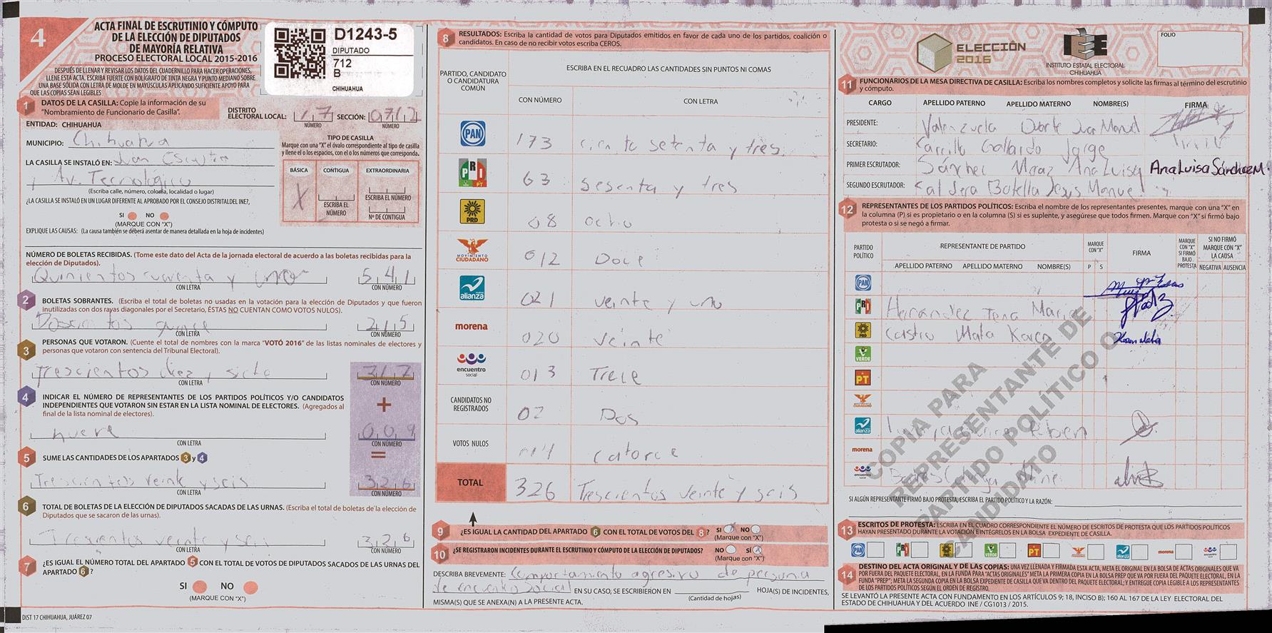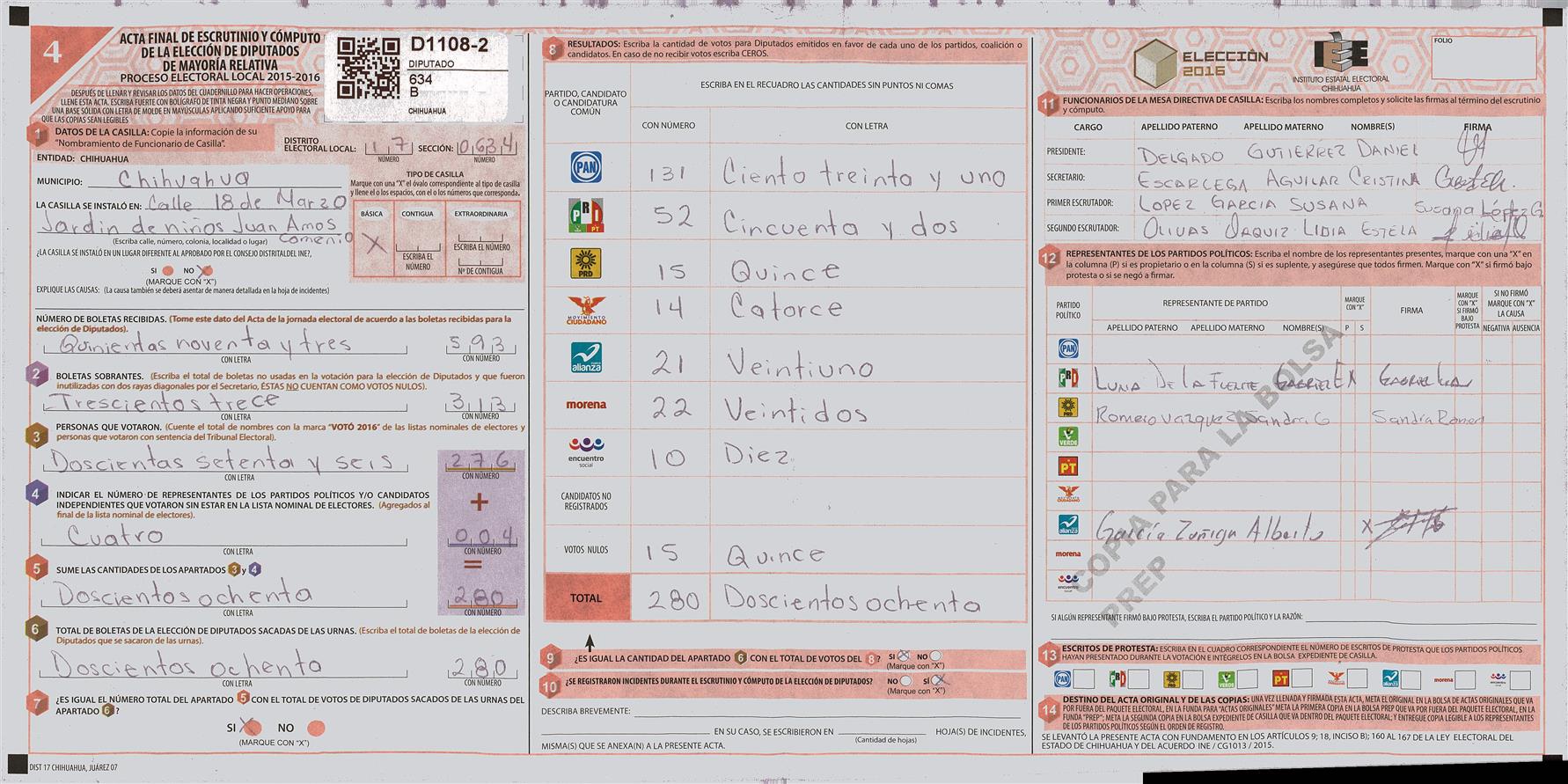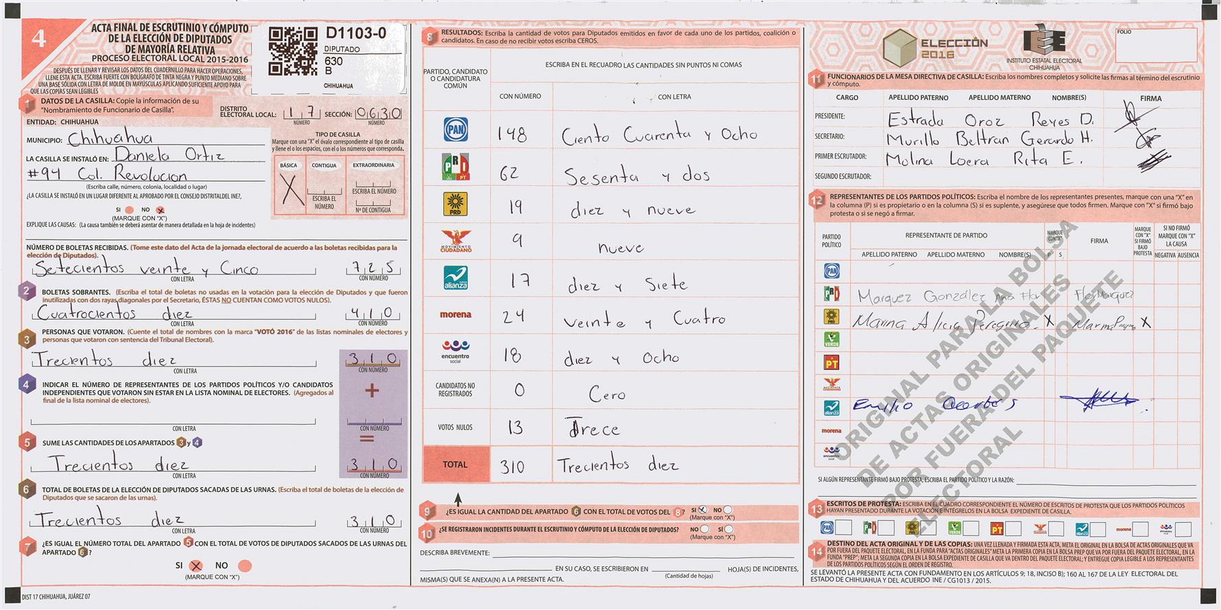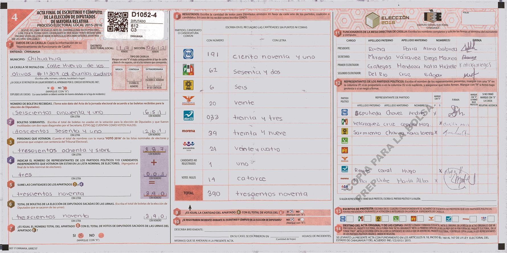RESULTADOS POR CASILLA DEL MUNICIPIO DE 17 CHIHUAHUA PARA LA ELECCIÓN DE DIPUTADOS