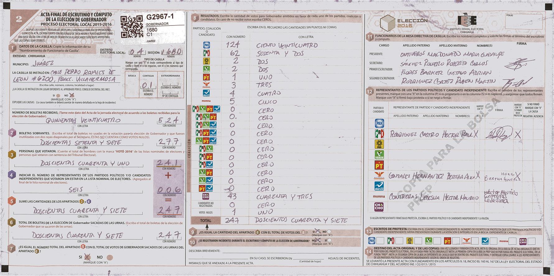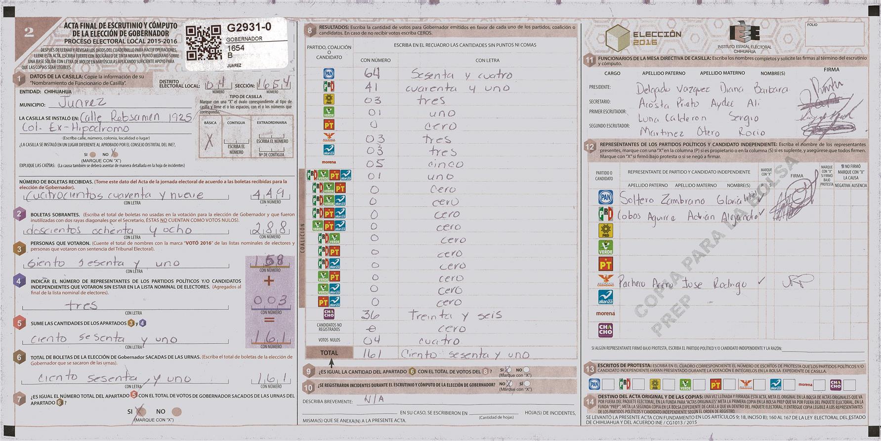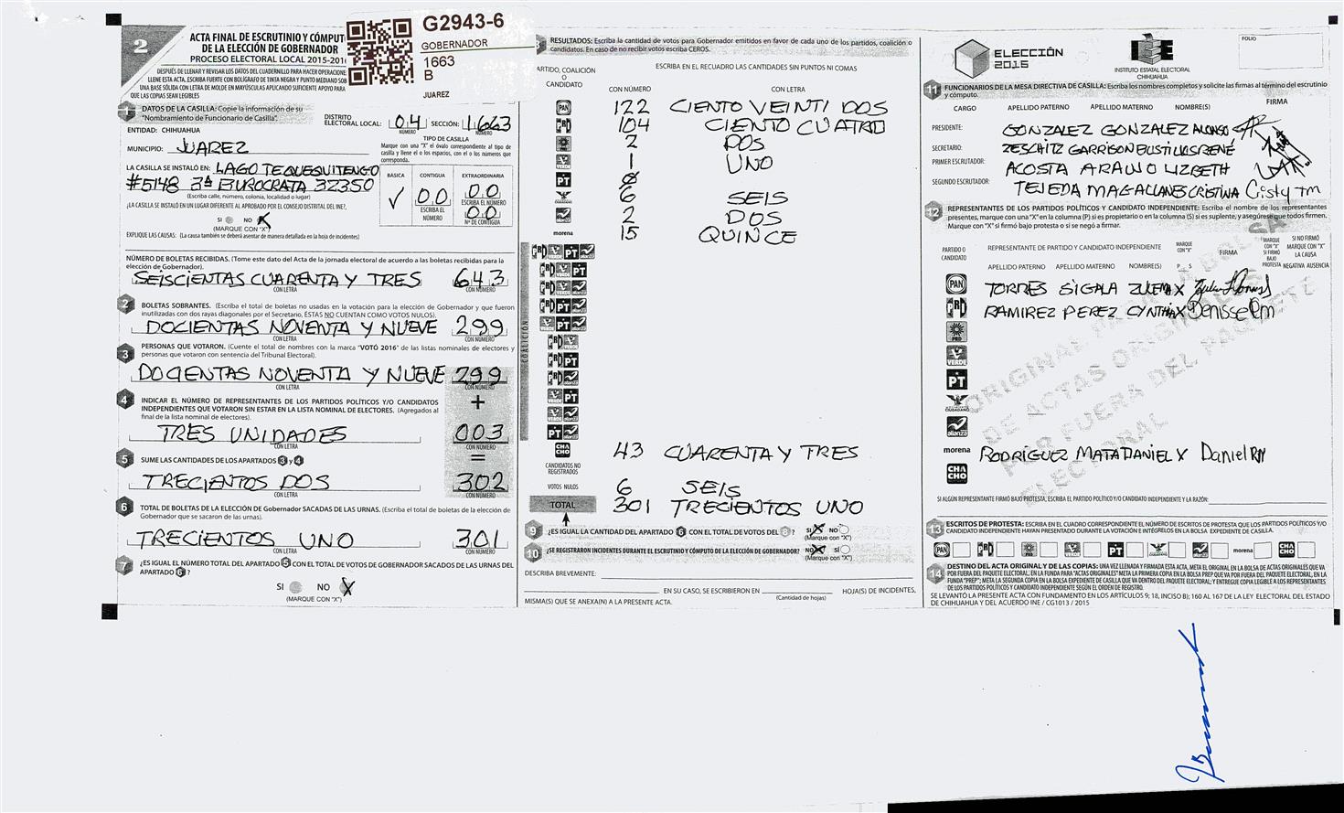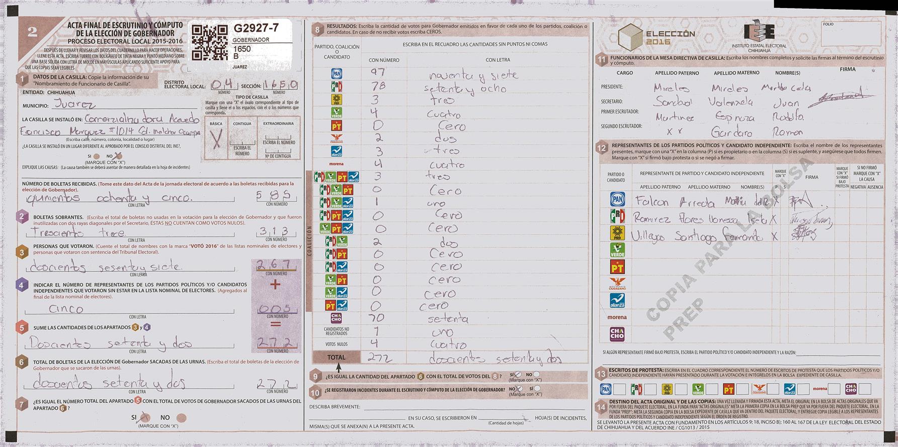 RESULTADOS POR CASILLA DEL MUNICIPIO DE JUAREZ PARA LA ELECCIÓN DE GOBERNADOR