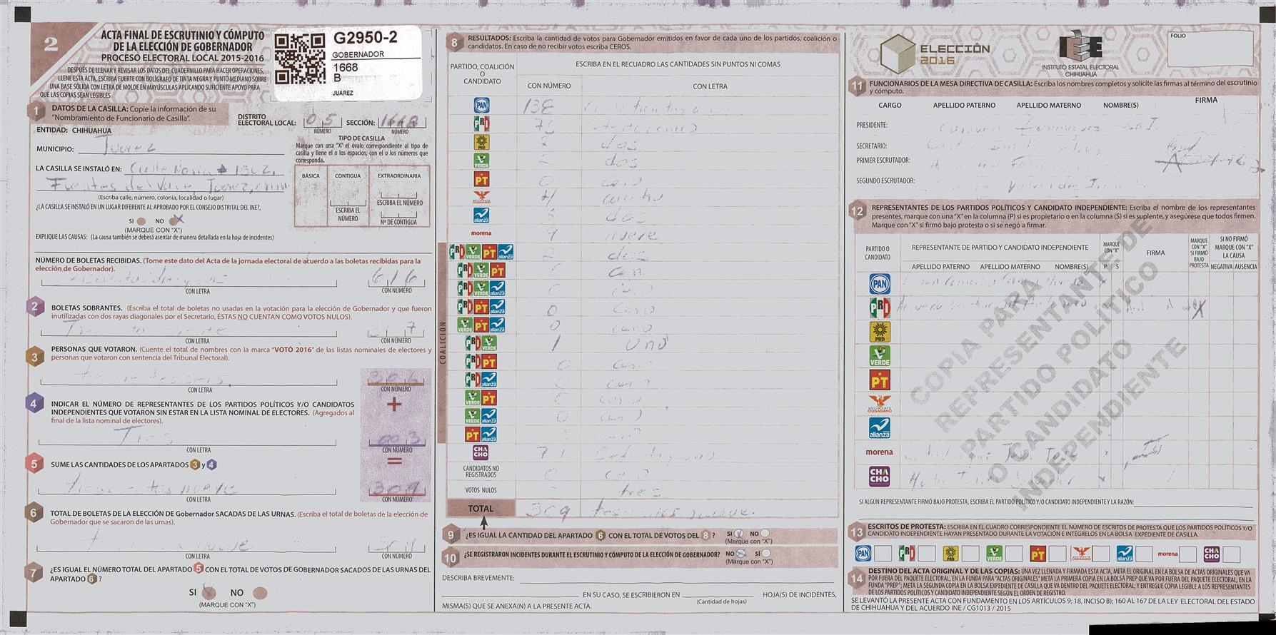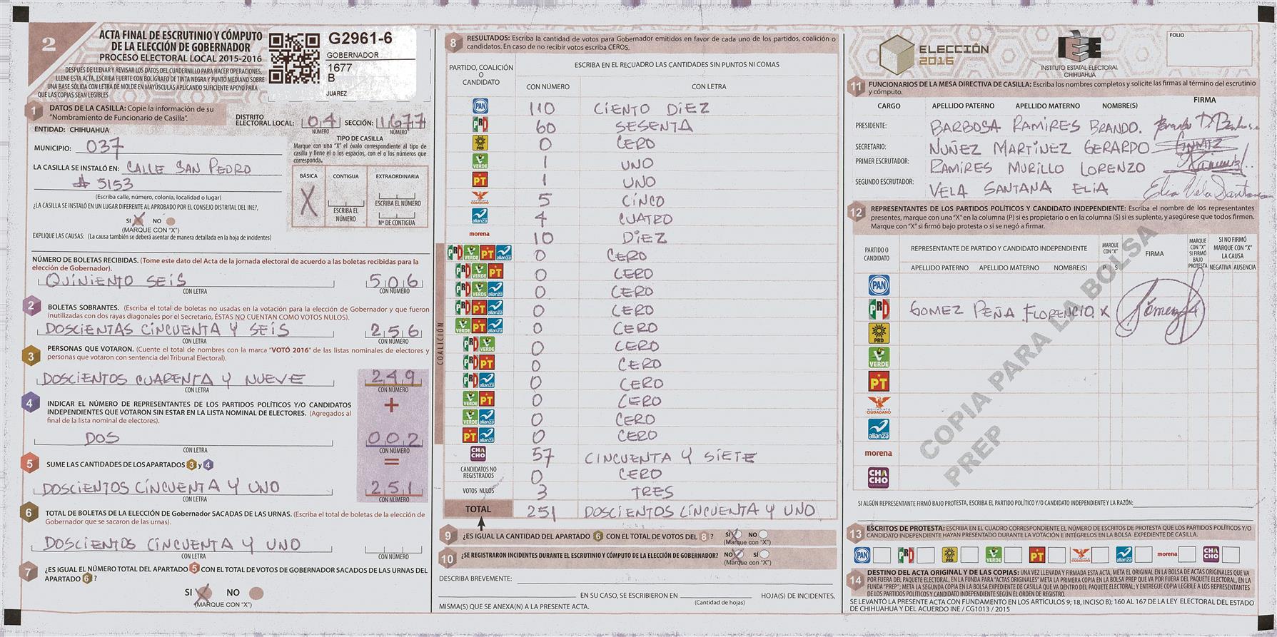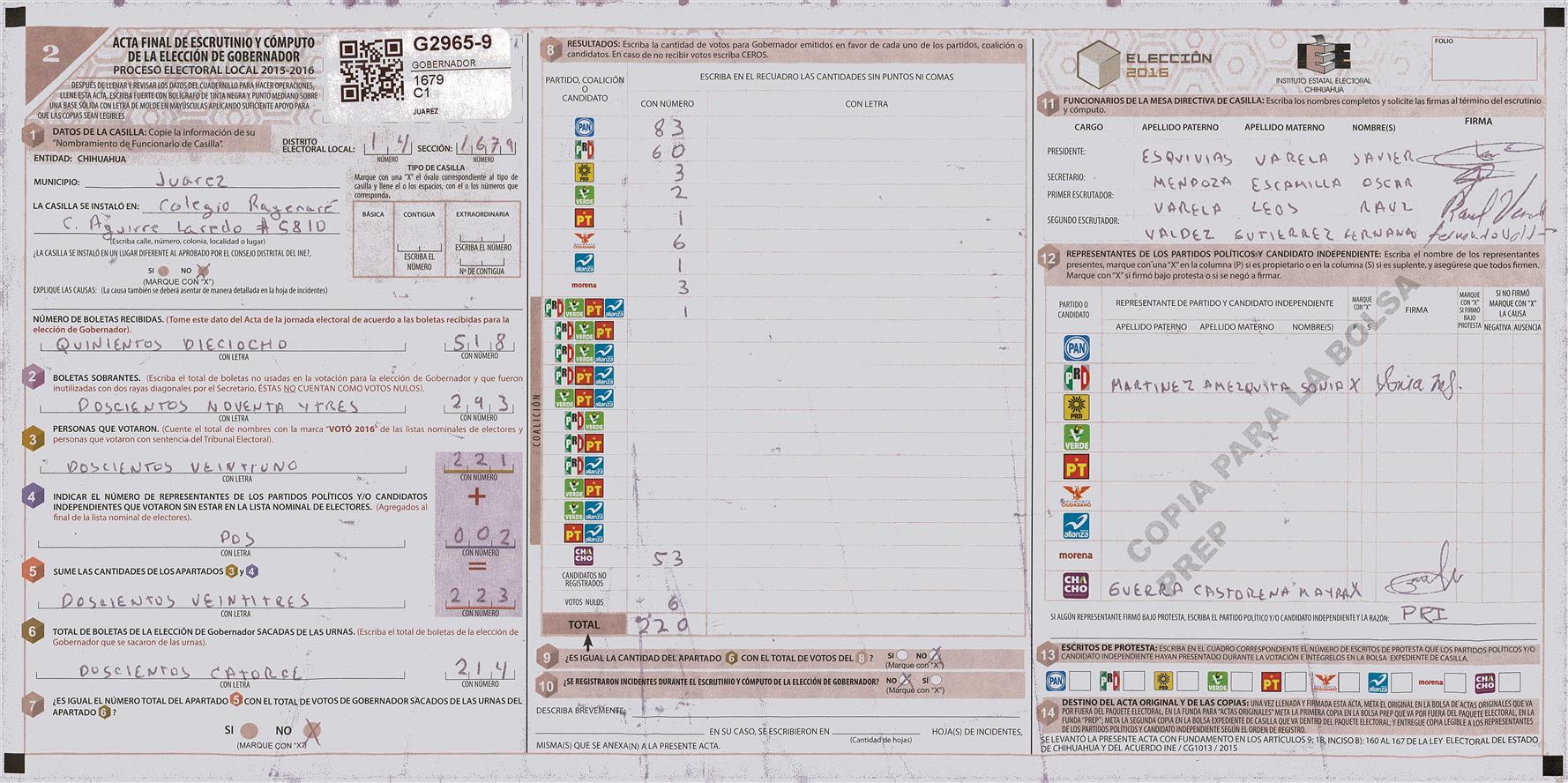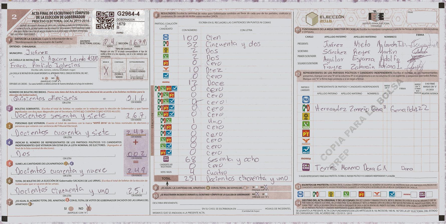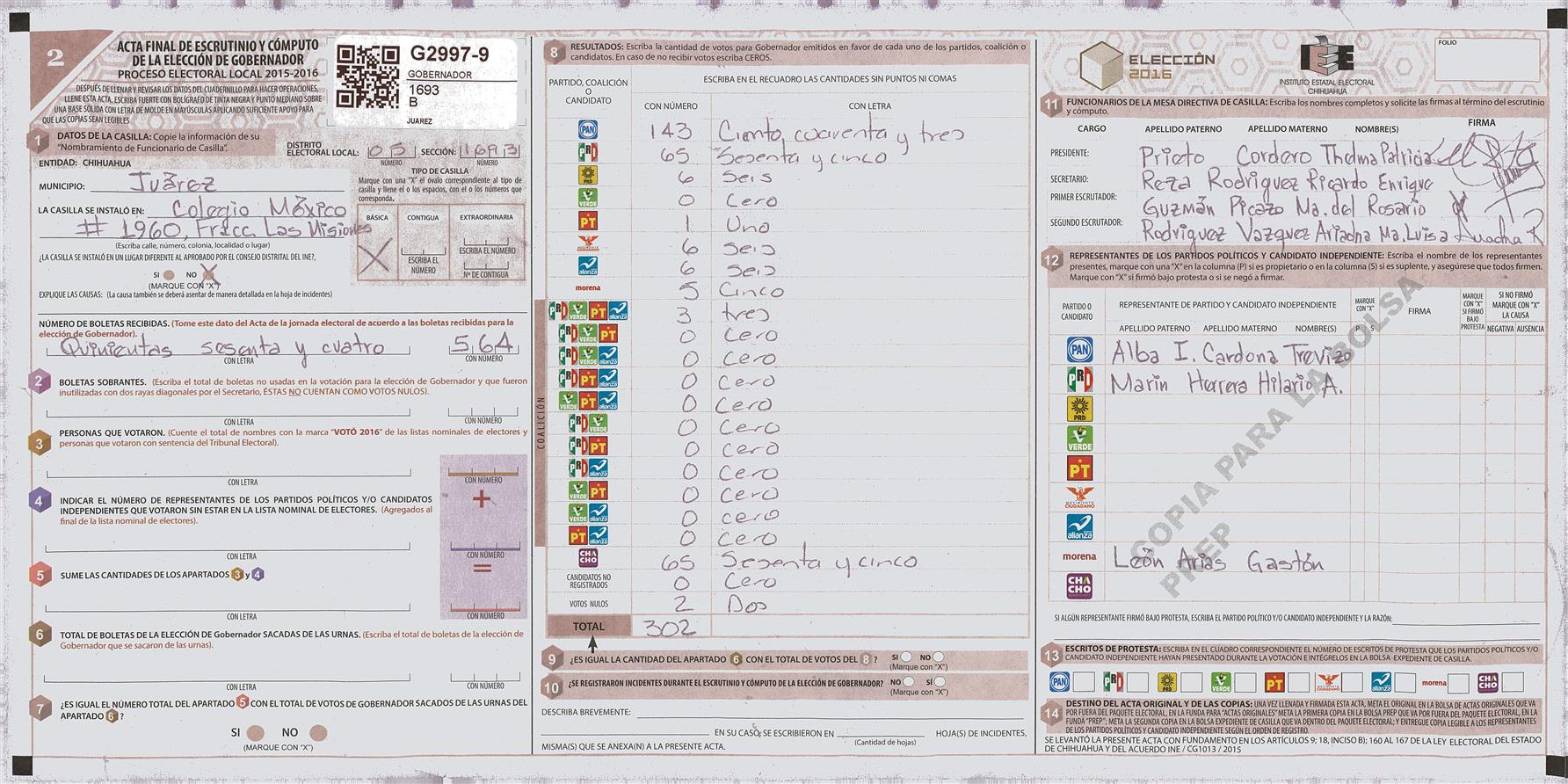 RESULTADOS POR CASILLA DEL MUNICIPIO DE JUAREZ PARA LA ELECCIÓN DE GOBERNADOR