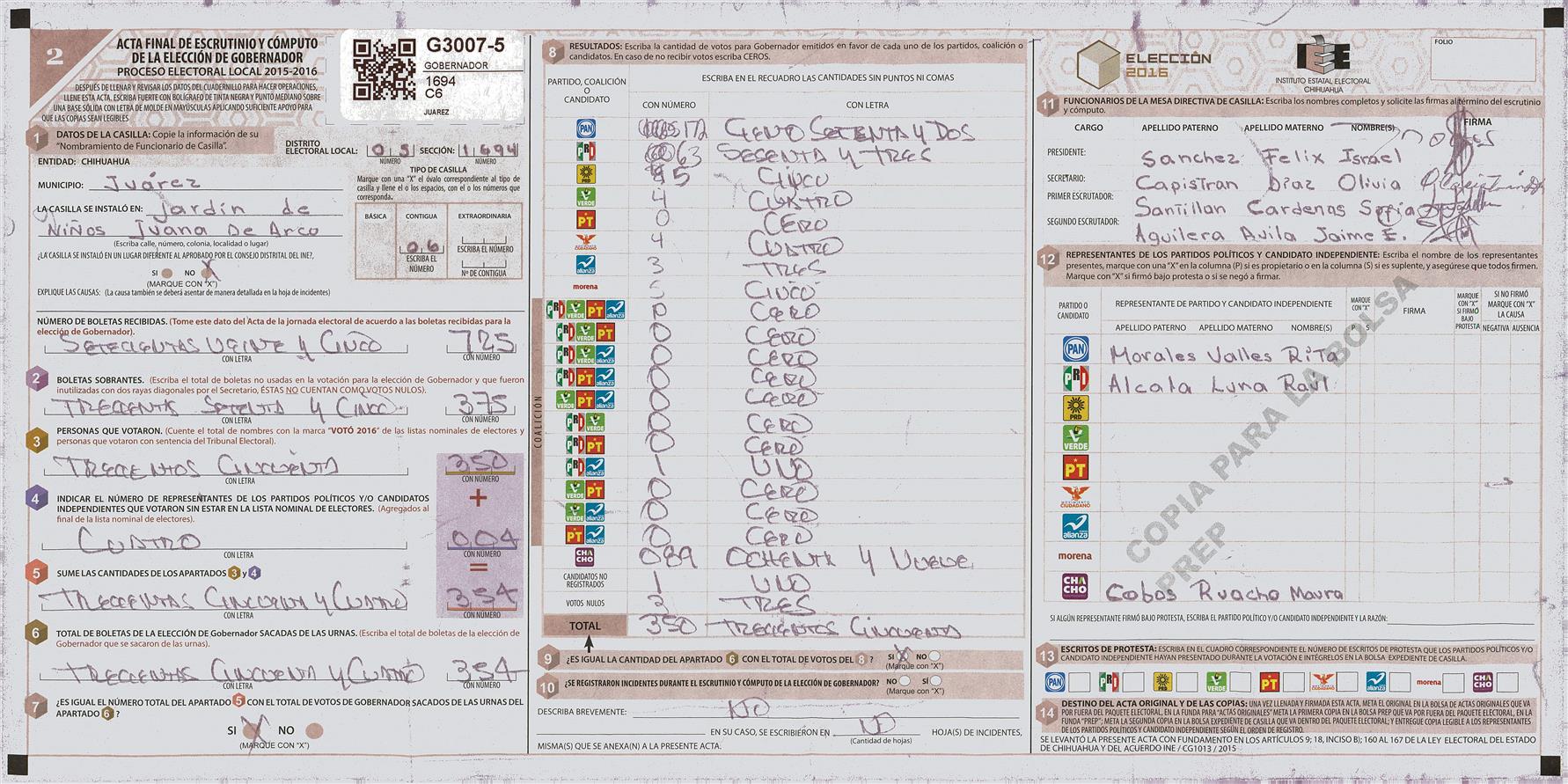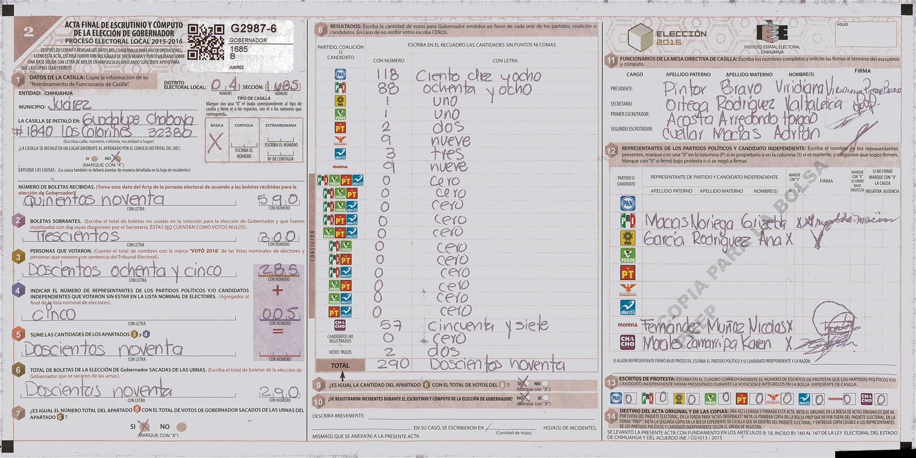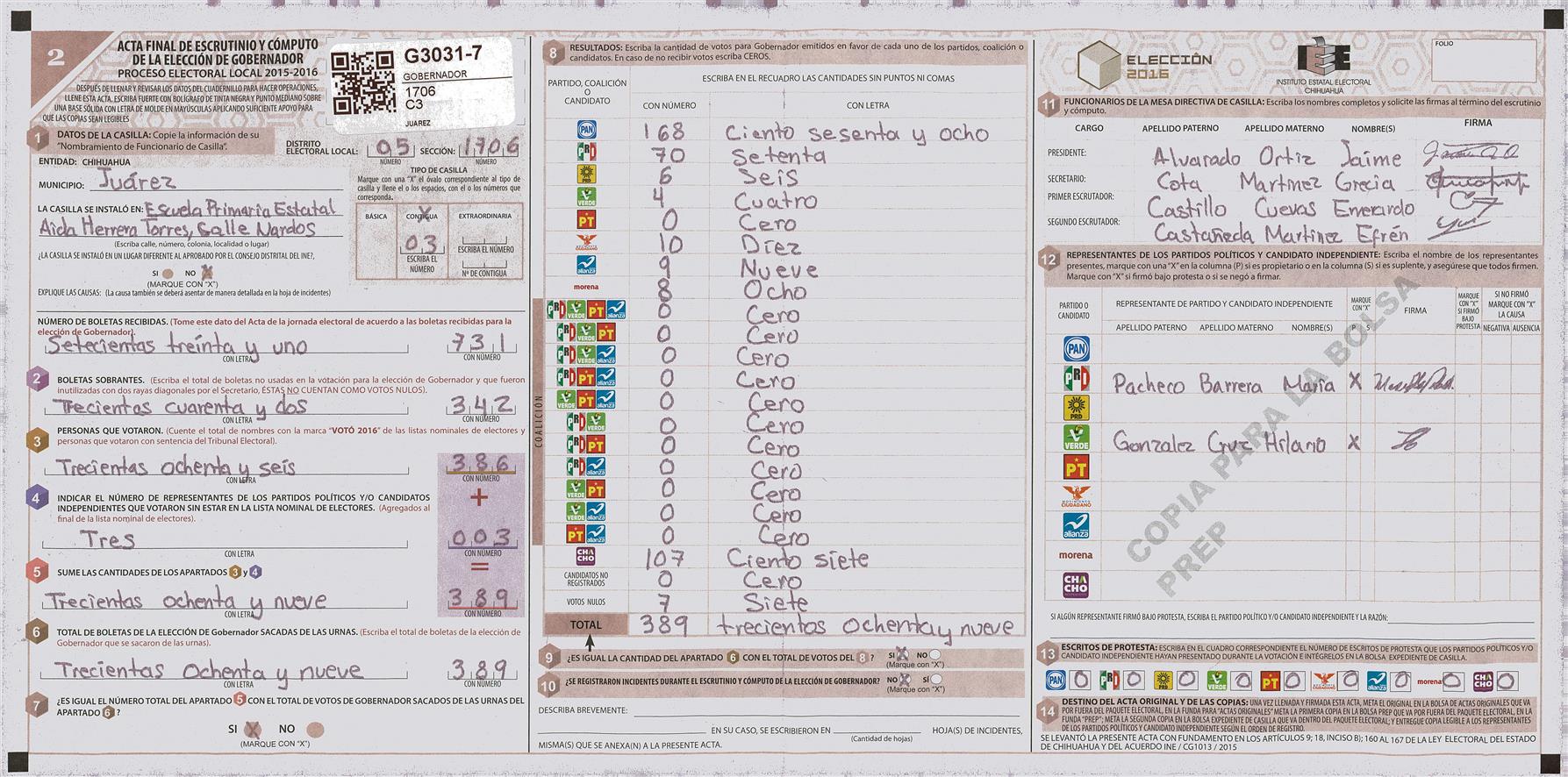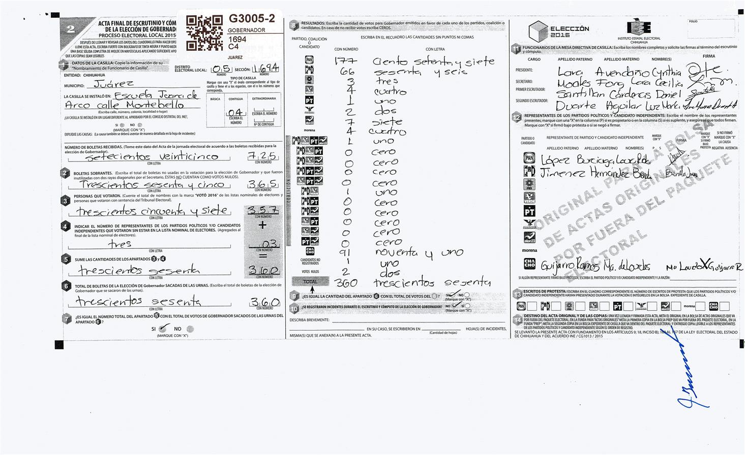 RESULTADOS POR CASILLA DEL MUNICIPIO DE JUAREZ PARA LA ELECCIÓN DE GOBERNADOR